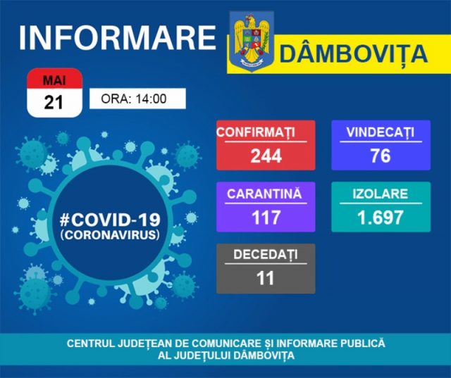 - Astăzi, 21.05.2020, conform situației DSP Dâmbovița: