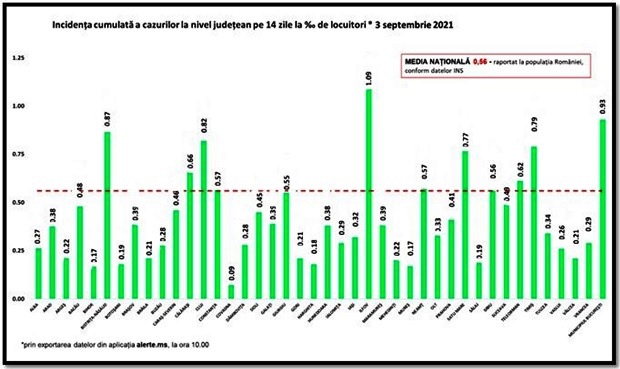 ** Datele din paranteze reprezintă numărul de cazuri noi, în intervalul 26 august 2021 – 2 septembrie 2021.