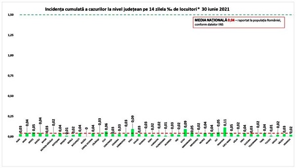 | Nr. crt. | Județ | Număr de cazuri confirmate(total) | Număr de cazuri nou confirmate | Incidența înregistrată la 14 zile |