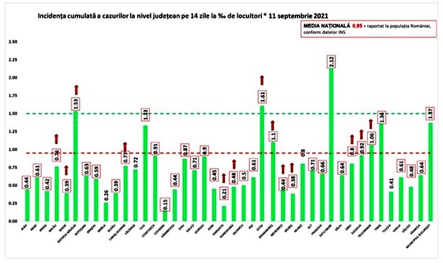 ** Datele din paranteze reprezintă numărul de cazuri noi, în intervalul 2 septembrie 2021 – 9 septembrie 2021.