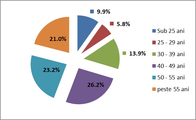Structura șomajului pe grupe de vârste se prezintă sugestiv astfel: