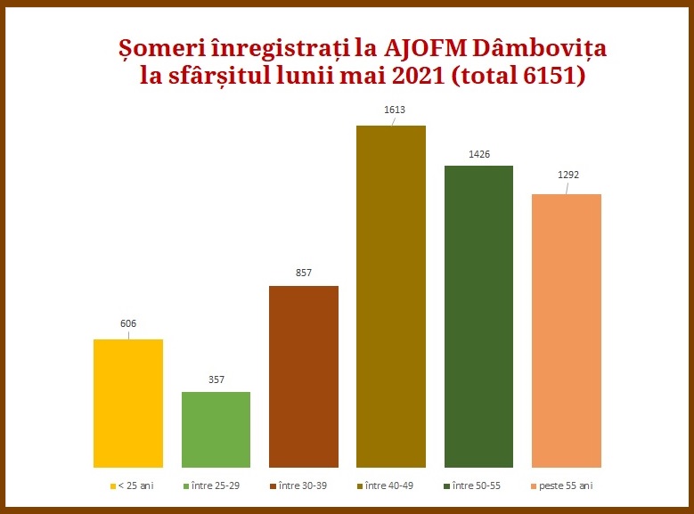 Șomerii cu studii gimnaziale au ponderea cea mai mare în totalul şomerilor înregistraţi în evidenţele AJOFM Dâmbovița (31,7 %). Cei cu studii primare și fără studii reprezintă 29,5 % din totalul şomerilor înregistraţi, iar 20,1 % dintre șomerii înregistrați au absolvit liceul sau școala postliceală. Șomerii cu nivel de pregătire profesională reprezintă 14,2 % din totalul șomerilor înregistrați, iar cei cu studii superioare sunt 4,5 %. Structura șomerilor înregistrați pe nivel de ocupabilitate stabilit prin profilare, se prezintă astfel: 2285 persoane foarte greu ocupabile, 3057 greu ocupabile, 448 mediu ocupabile, iar 361 sunt persoane ușor ocupabile. Încadrarea într-o categorie de ocupabilitate se realizează ca urmare a activităţii de profilare a persoanelor înregistrate în evidenţele noastre. Informaţii detaliate despre structura şomajului la nivelul judeţului Dâmbovița sunt afişate pe pagina de internet a AJOFM Dâmbovița, la adresa www.anofm.ro.