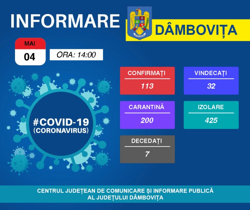 Astăzi, 04.05.2020, conform situației DSP Dâmbovița:
