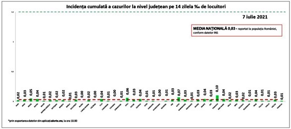 | Nr. crt. | Județ | Număr de cazuri confirmate(total) | Număr de cazuri nou confirmate | Incidența înregistrată la 14 zile |