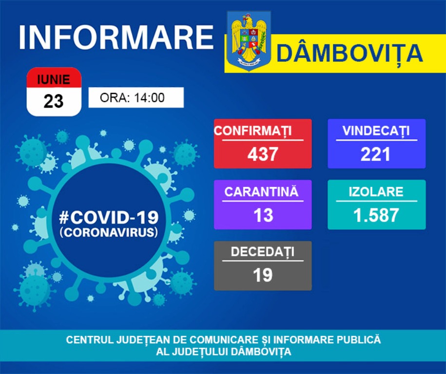 Astăzi, 23.06.2020, conform situației DSP Dâmbovița: