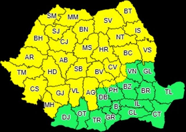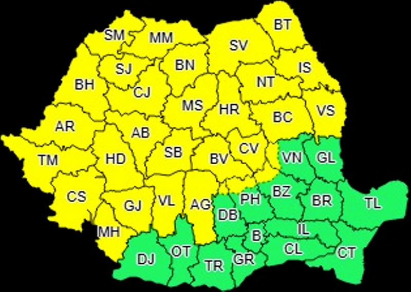 În intervalul menționat vor fi perioade în care instabilitatea atmosferică va fi accentuată și se va manifesta prin intensificări ale vântului cu viteze, în general, de 60…80 km/h, pe alocuri vijelii, frecvente descărcări electrice, averse torențiale și grindină.