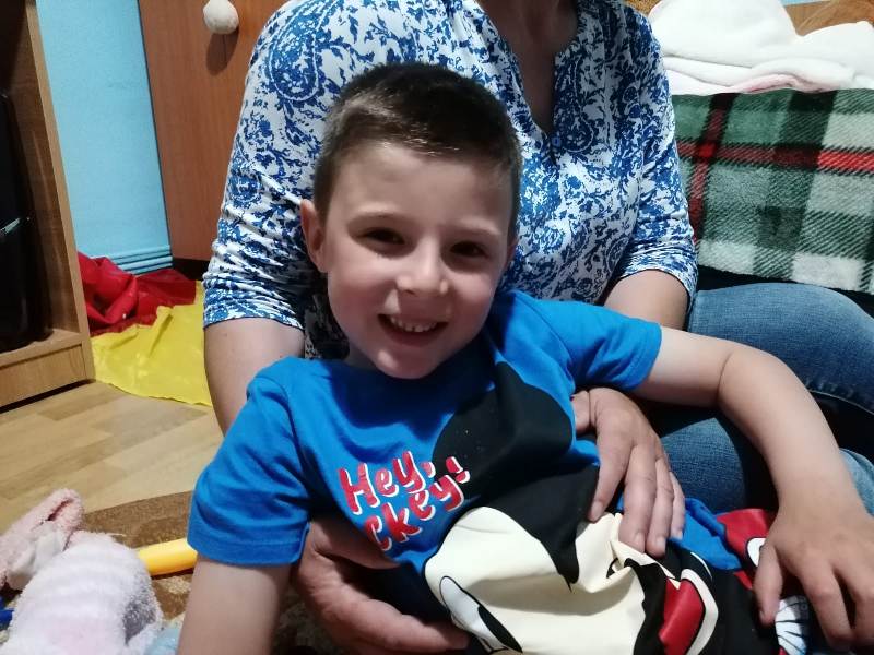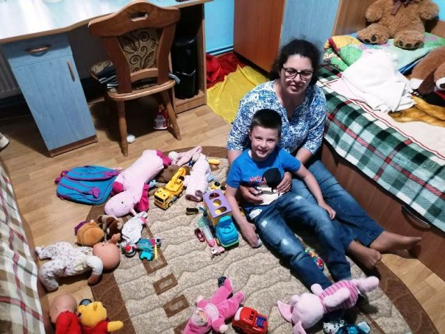 Trecând peste statistici, vă prezentăm o altă familie fericită, întregită prin adopție. Robi este un copil special care a avut norocul să întâlnească o femeie deosebită, caracterizată doar prin bunătate, răbdare și iubire necondiționată față de copilași. Robi a fost abandonat încă de la naștere, iar la 17 zile a ajuns în brațele doamnei Daniela, asistent maternal profesionist: ”Bebeluș nou-născut, l-am luat direct din maternitate. Am fost surprinsă, am găsit un copil blond, extrem de mic, foarte firav. Am simțit compasiune, milă și un fel de durere pentru că era foarte mic. Avea 2 kg și jumătate, pielea parcă îi era transparentă, capul foarte mic. Nici nu mânca… A fost foarte greu la început.”. Până la 3 luni, Robi părea un copil normal, însă, medicii i-au pus un diagnostic crunt: sindrom bipiramidal – paralizie la lobii frontali ai creierului. Specialiștii nu i-au dat nicio șansă, spunând că ”acest copil abia dacă va putea face primii pași la vârsta de 7 ani și că va fi o legumă”. Doamna Daniela nu s-a lăsat și a refuzat să creadă că micuțul nu are nicio șansă. Ba chiar și fiul său cel mic și-a dat toate economiile pentru ca Robi să meargă la medic. A mers cu el la recuperare continuă până la 3 ani, la Gura Ocniței: ”Mă duceam 3 săptămâni, zi de zi, acolo și 3 săptămâni aveam pauză acasă. Continuăm recuperarea și acum.”. Robi a fost un luptător încă din primele zile de viață. Recuperarea a dat roade, iar băiatul a mers singur de la 1 an și 3 luni.