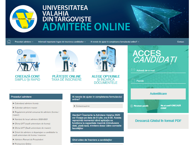 Tot pe siteul Universității Valahia găsiți și informații importante despre modalitatea de înscriere: