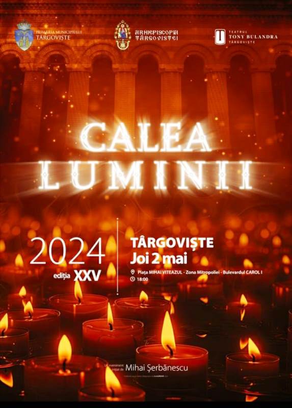 Așa cum v-am anunțat deja aici, „Calea Luminii”, eveniment unic în lume va avea loc și în acest an, la Târgoviște, în Joia Mare sau Joia Patimilor, adică astăzi, 2 mai. „Calea Luminii” este organizată de Primăria și Consiliul Local Municipal Târgoviște, în colaborare cu Arhiepiscopia Târgoviștei și Teatrul „Tony Bulandra” din Târgoviște.