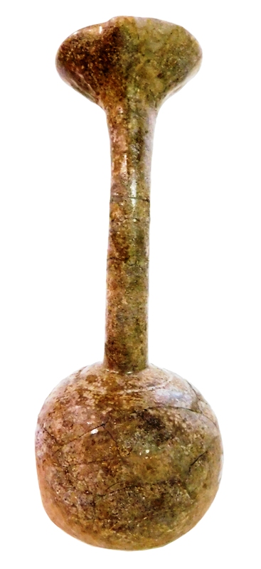 Al doilea obiect ales pentru expunere este un vas din sticlă care face parte din categoria Lacrimarium, Balsamarium sau Olfactoriolum, cunoscut și ca Unguentarium. O întrebuințare a fost cea de vas liturgic, utilizat în ceremonialul religios, la înmormântări sau pus în legătură cu edificarea lăcașelor de cult. Unele sunt de proveniență occidentală – atelierele de la Murano, de exemplu. Altele, însă, pot proveni de la ateliere locale, Matei Basarab având o sticlărie la mică distanță de capitala Târgoviște.