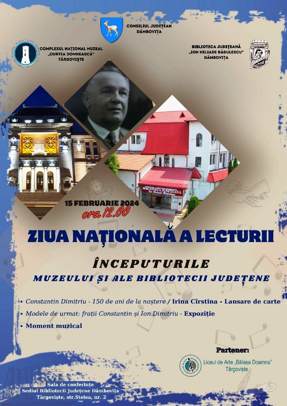 Biblioteca Județeană „I. H. Rădulescu” Dâmbovița și Complexul Național Muzeal „Curtea Domnească Târgoviște” vă invită să participați la „Ziua Națională a Lecturii”.