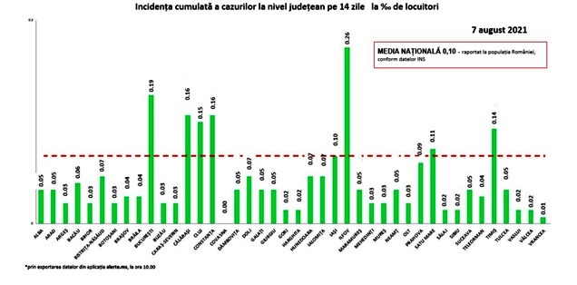 ** Datele din paranteze reprezintă numărul de cazuri noi, în intervalul 29 iulie 2021 – 5 august 2021.