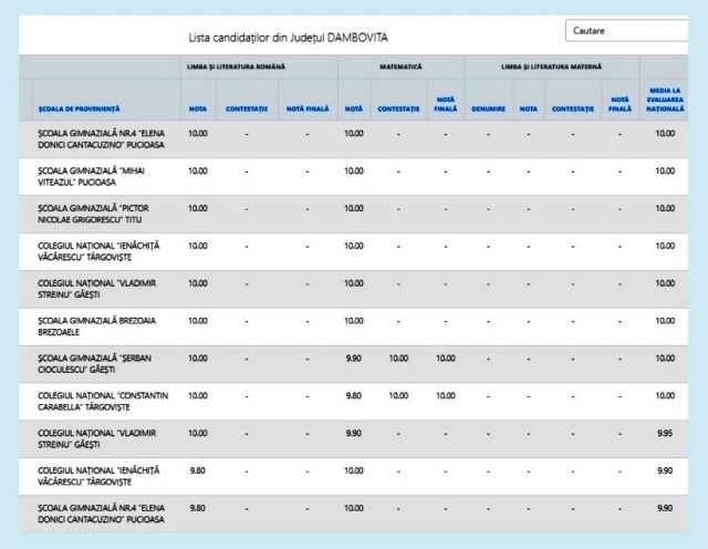 La nivelul județului Dâmbovița au fost depuse 248 de contestații, dintre care 119 la Limba și literatura română și 129 la Matematică. În urma soluționării contestațiilor, 2169 candidați au obținut medii mai mari sau egale cu 5 (cinci), rezultând o rată de 72,85%, aceeași ca la rezultatele afișate inițial, însă a crescut numărul candidaților cu media generală 10: de la 6 la 8 (un elev de la Colegiul Național „Constantin Carabella” Târgoviște și un elev de la Școala Gimnazială „Șerban Cioculescu” Găești).