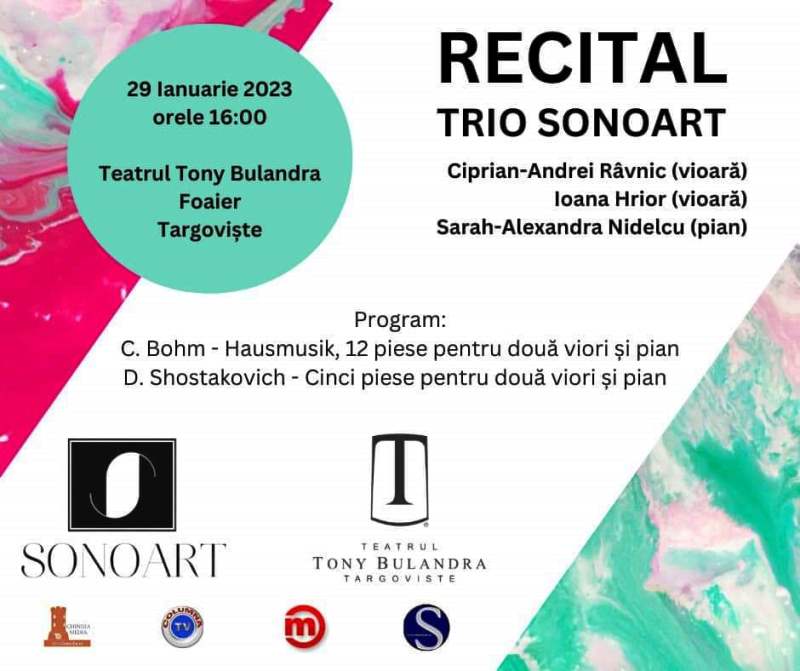Asociația SonoArt deschide anul 2023 cu o serie de recitaluri, în orașul Târgoviște, care se vor desfășura pe parcursul întregului an. Inițiativa aparține tinerilor muzicieni târgovișteni Irina Mareș, Ciprian Râvnic și Ioana Hrior, proiectul făcând parte din ciclul de manifestări culturale de promovare a muzicii clasice și a tinerilor interpreți.
