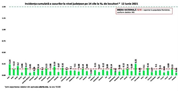 ** Datele din paranteze reprezintă numărul de cazuri noi, în intervalul 3 iunie 2021 – 10 iunie 2021.