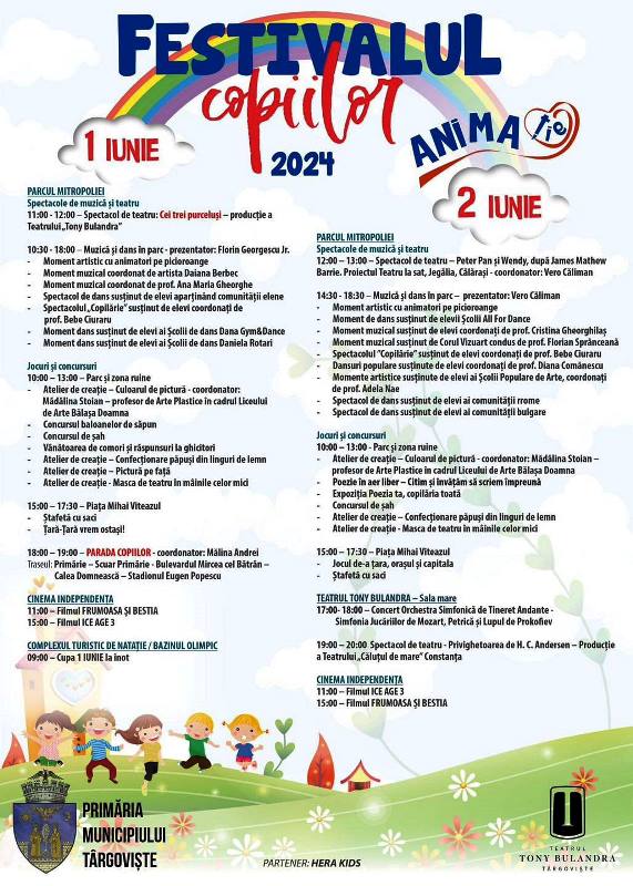 Orchestra Simfonică de Tineret „Andante” vă invită duminică, 2 iunie, începând cu ora 17.00, în Sala Mare a Teatrului Tony Bulandra din Târgoviște, pentru un concert dedicat Zilei Copilului, concert inclus în programul Festivalului Copiilor organizat de Primăria Municipiului Târgoviște și Teatrul Tony Bulandra Târgovişte.