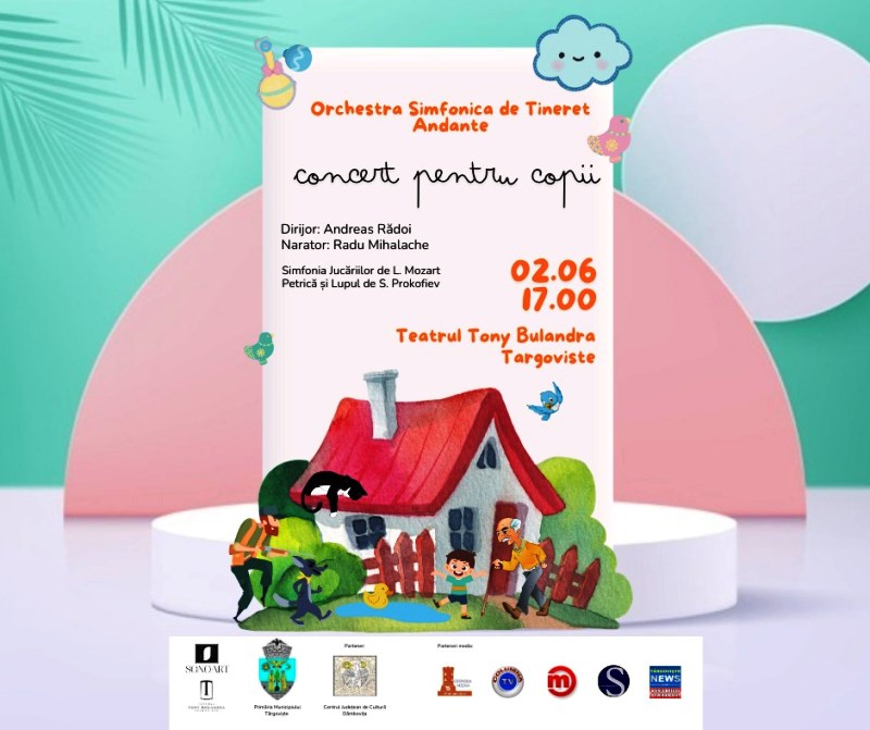 Orchestra Simfonică de Tineret „Andante” vă invită duminică, 2 iunie, începând cu ora 17.00, în Sala Mare a Teatrului Tony Bulandra din Târgoviște, pentru un concert dedicat Zilei Copilului, concert inclus în programul Festivalului Copiilor organizat de Primăria Municipiului Târgoviște și Teatrul Tony Bulandra Târgovişte.