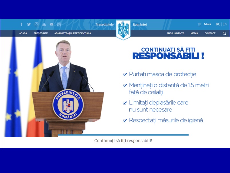 Președintele României, Klaus Iohannis a susținut ieri o declarație de presă în care ne îndeamnă pe noi toți să fim în continuare responsabili și să ne protejăm, dar și combate ferm îndemnurile la nesupunere și la nerespectarea regulilor din ultimele zile.