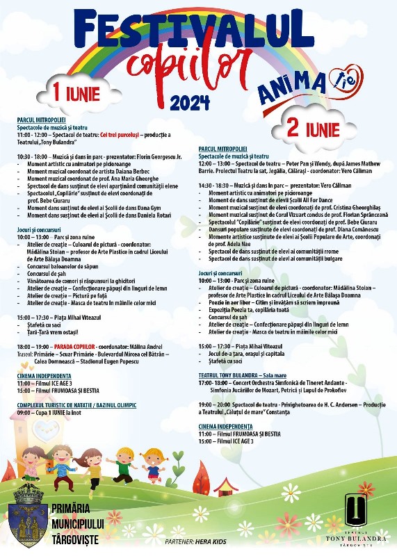 „Noi îi așteptăm pe toți copiii, de la toate unitățile de învățământ din Târgoviște să vină, să ne bucurăm împreună de Ziua lor. Este un program atractiv, un program care sperăm noi că va fi pe placul tuturor!” și vă invităm să-i sărbătorim pe cei mici prin joacă, sport, cântec, teatru sau film, pentru că merită tot ce e mai bun pe lume și un viitor sigur și fericit!