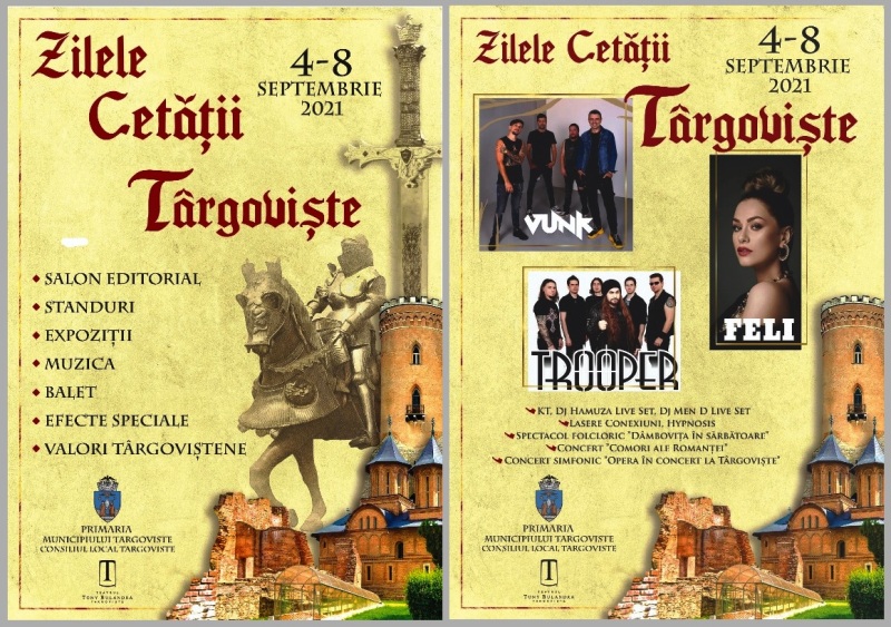 8 septembrie, Ziua Târgoviștei, va fi sărbătorită și în acest an printr-o serie de evenimente cultural-artistice și sportive desfășurate sub genericul Zilele Cetății. Programul complet al manifestărilor ce vor avea loc între 4 și 8 septembrie a fost prezentat azi chiar de primarul municipiului Târgoviște, Cristian Daniel Stan, în cadrul unei conferințe de presă în care l-a avut alături și pe președintele Consiliului Județean Dâmbovița, Corneliu Ștefan: