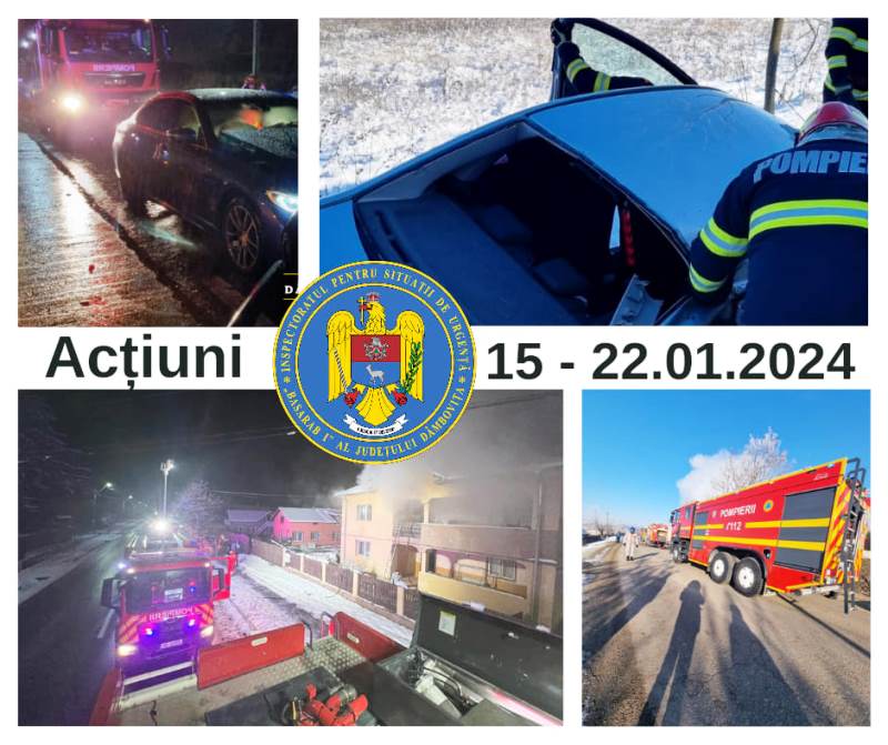 În perioada 15 – 22 ianuarie 2024, echipajele de intervenţie din cadrul Inspectoratului pentru Situaţii de Urgenţă „Basarab I” al judeţului Dâmboviţa au acționat la 289 evenimente: