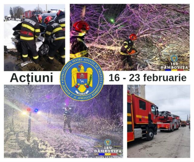 În perioada 16 februarie – 23 februarie 2026, echipajele de intervenție ale Inspectoratului pentru Situații de Urgență „Basarab I” al județului Dâmbovița au intervenit în 400 de evenimente: